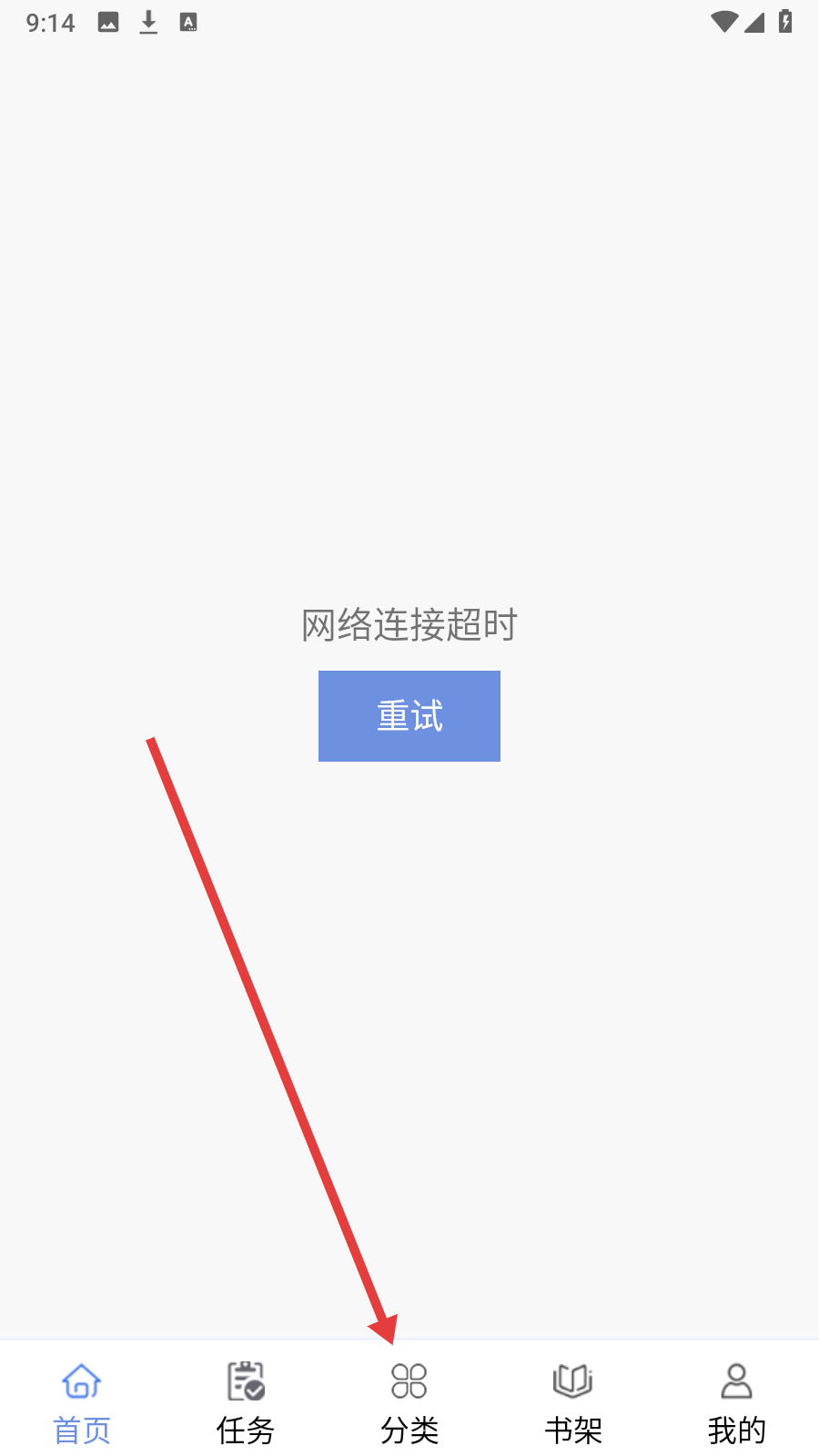 1、在首页点击底部【分类】进入书籍分类界面。
