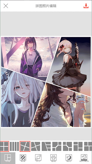 3、多张照片可实现完美拼接,多种布局与背景能随意搭配组合。
