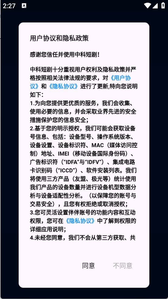 1、首先在3G游戏网中科短剧,查看并同意隐私政策与用户协议。