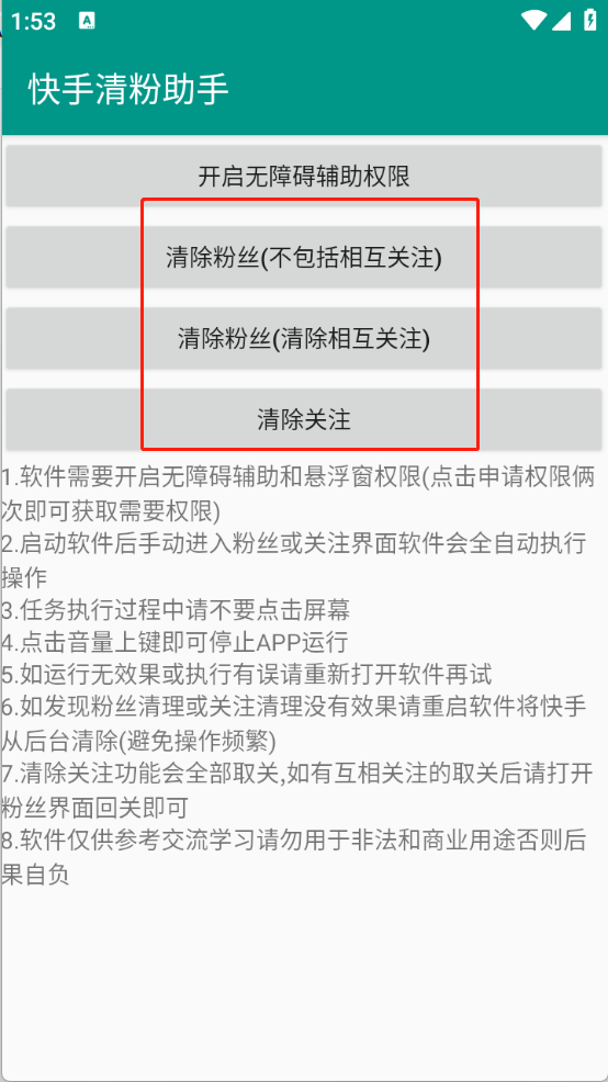 7、清除关注功能会全部取关,如有互相关注的取关后请打开粉丝界面回关即可