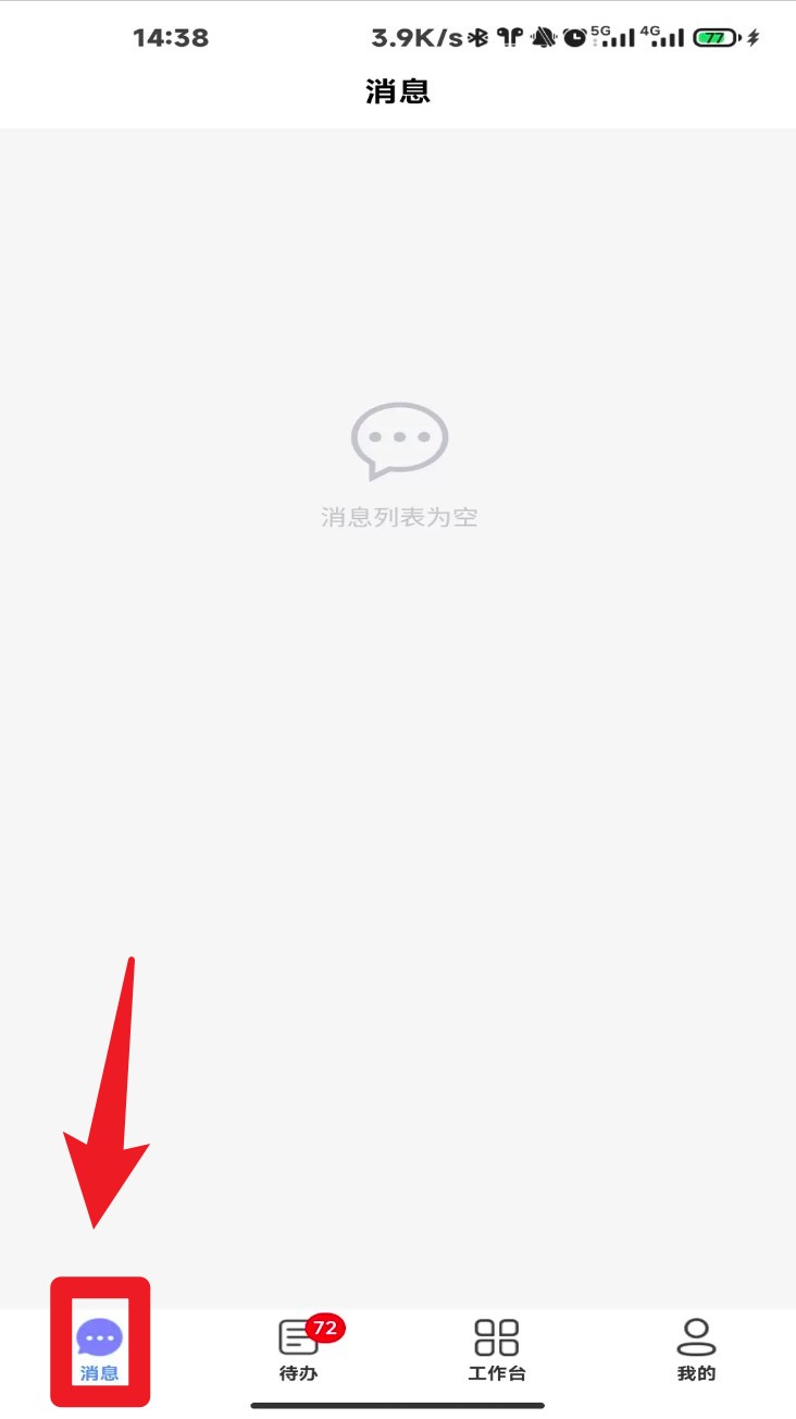 2. 登录系统后,点击页面底部导航栏中的“消息”按钮,即可查看各类业务相关的通知信息,该功能支持实时刷新内容以及未读消息提醒。