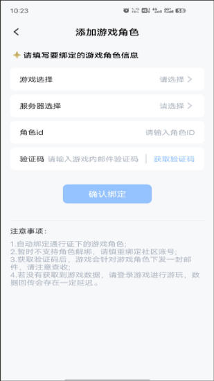 4、完成填写后,点击确认绑定。系统会进行角色信息验证,确认信息正确后,就成功绑定了游戏角色。