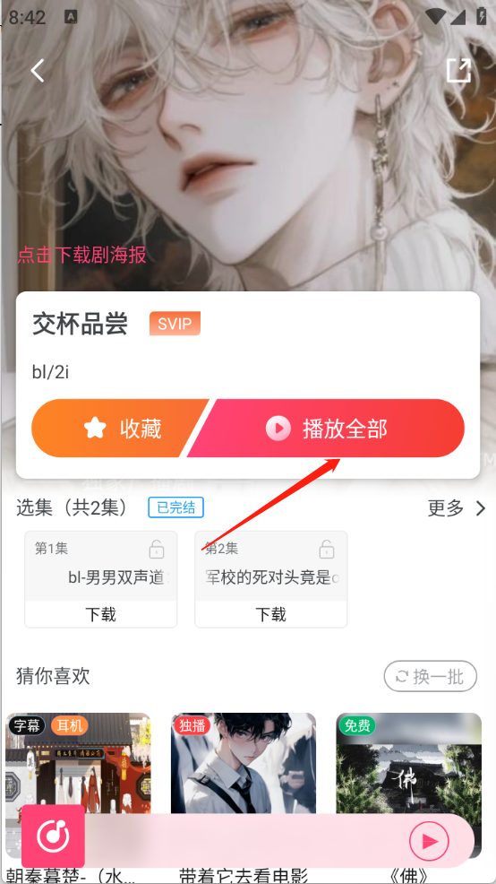 5、点开想听的广播剧之后,点击“播放全部”即可。