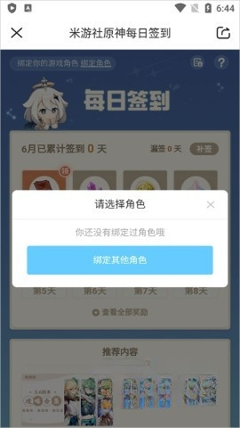 3、若已持有原神账号,系统将自动进行检测绑定;若尚未拥有,则可选择绑定其他角色。