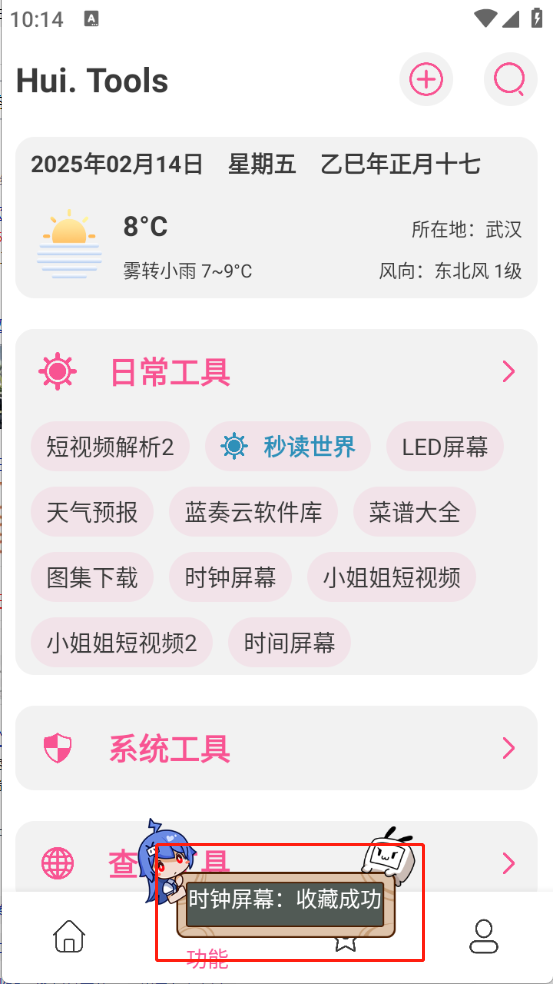 2、首页页面为大家推荐了很多的工具资源,包括每日一言、小目标以及在线影视等。