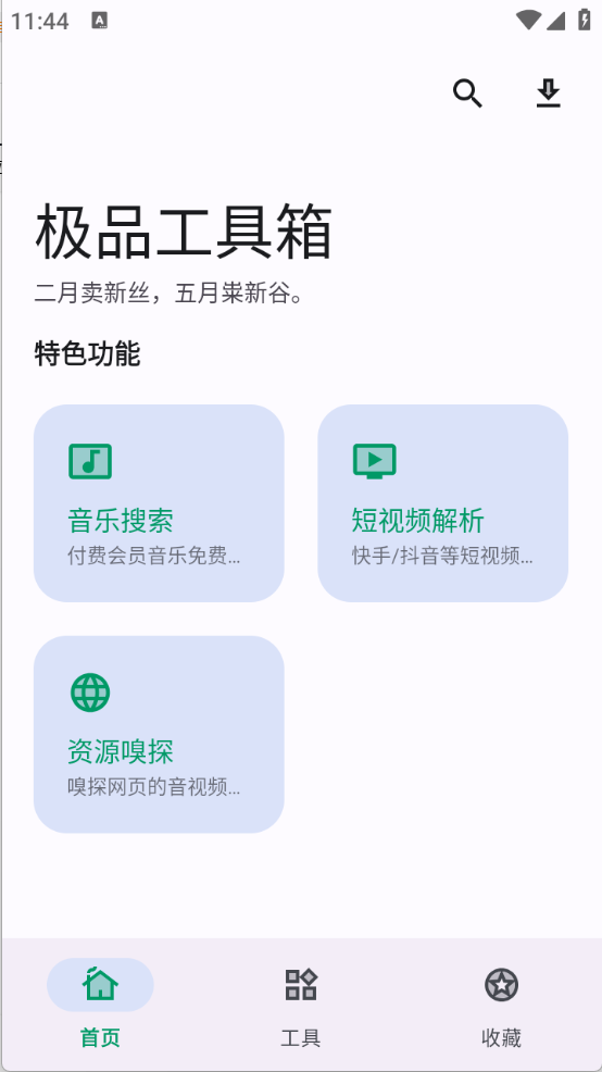 2、首页页面为大家推荐热门工具,包含了音乐搜索、短视频解析等。