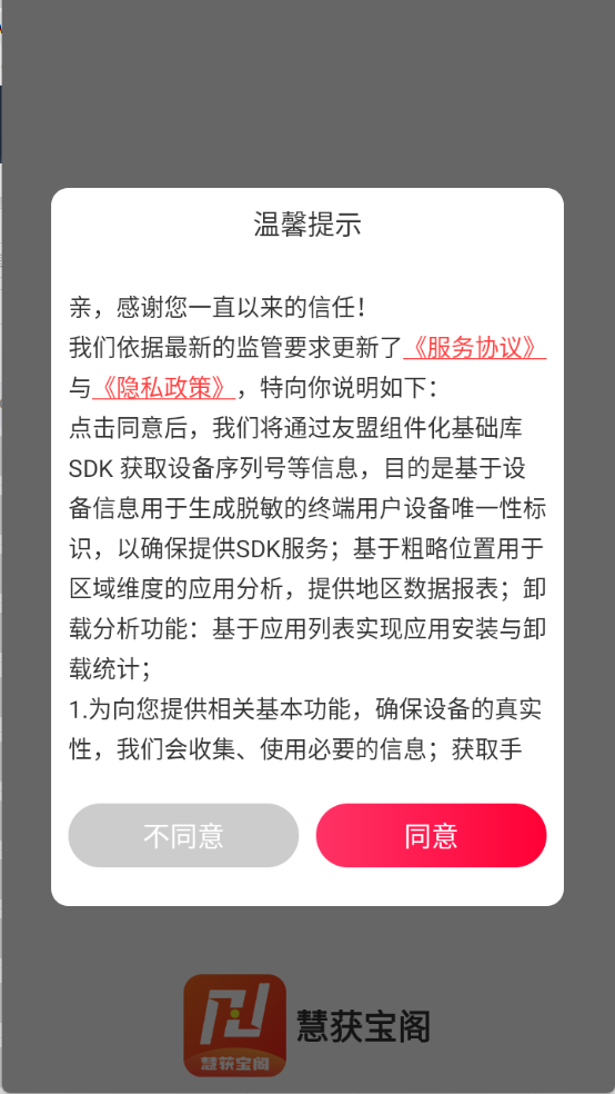 1、首先在3G游戏网慧获宝阁,查看并同意隐私政策与用户协议。