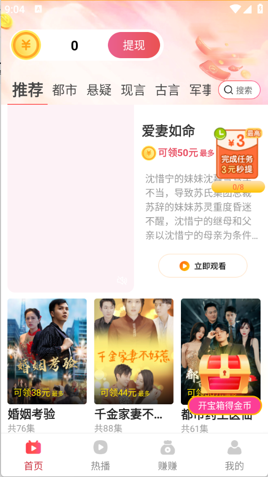 慧获宝阁,拥有很多的短剧资源,包含了玄幻、言情以及科幻等类型,可以一边看短剧一边领红包,短剧分类超级详细,快速找到自己喜欢的短剧,短剧剧集齐全,并且还在不断更新新的短剧内容,喜欢看看剧的用户都可以在这里找到自己喜欢的短剧。