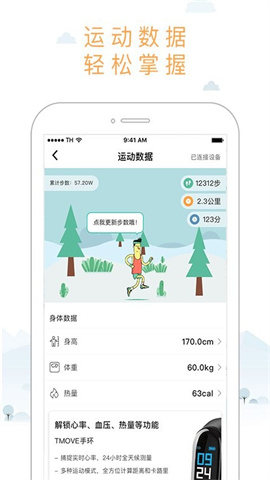 2、借助设备连接,能全方位了解自身运动数据,像步数、里程、运动时长都能清晰掌握,身高体重也一目了然;