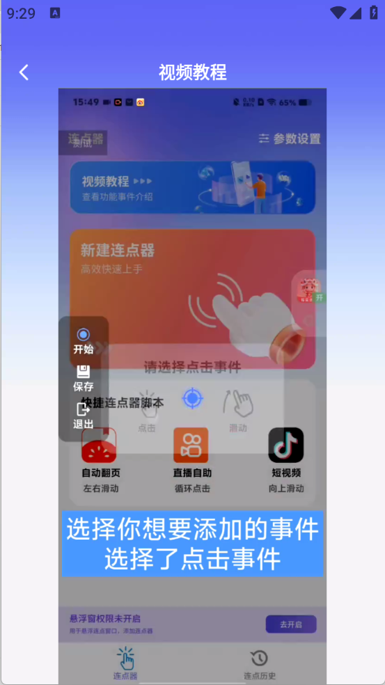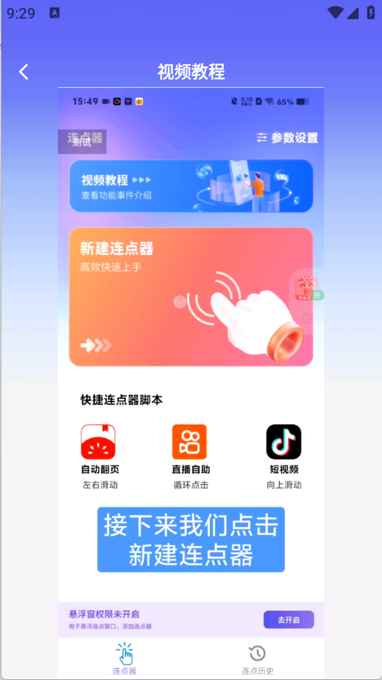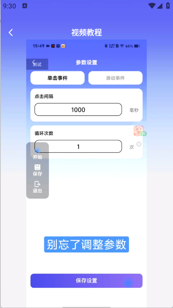 连连速点,可以帮助用户点击重复性的动作,包括刷短视频、看小说翻页以及各种重复点击的动作,可以通过该软件进行设置参数,包括点击次数、频率等功能,彻底解放用户的双手,告别重复点击的枯燥。