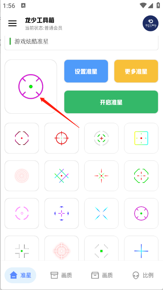 1、进入龙少工具箱软件,下面包含了很多的准星样式。