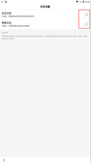 4、找到搜索历史和网页浏览记录,并清理即可。