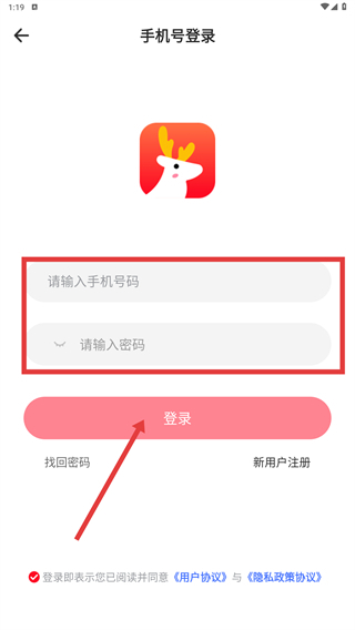 4、在手机号登录页面,输入手机号和密码后,点击【登录】功能按钮即可完成登录操作。