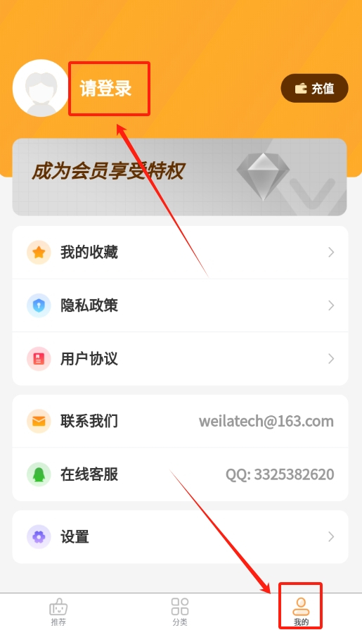 1、打开朋友圈文案精品句子软件,找到底部的“我的”页面,点击进入后就能看到登录按钮。