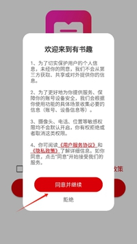 2、打开后,请仔细阅读并同意有书趣的用户协议。