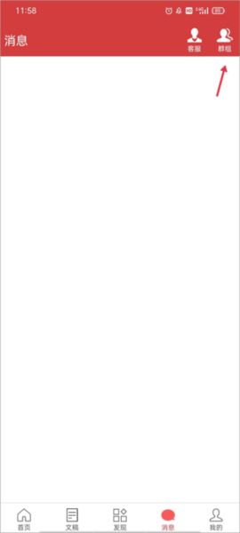 1、进入朗诵汇的【消息】页面后,点击右上角的“群组”选项。