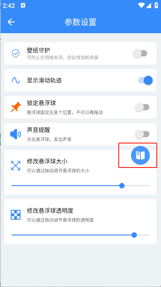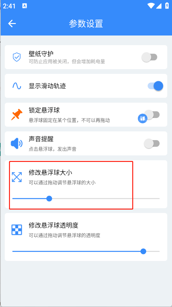 2、接着点击右上角的三个点,在出现的页面中根据自身需求通过拖动进度条来调整悬浮球的大小。