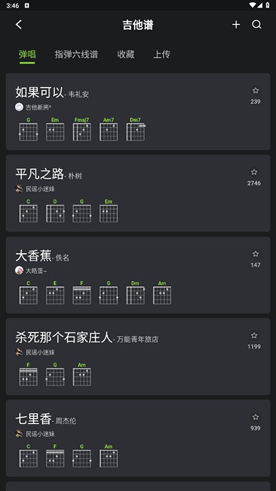2、吉他谱页面内可以看到一些热门歌曲的乐谱教程;