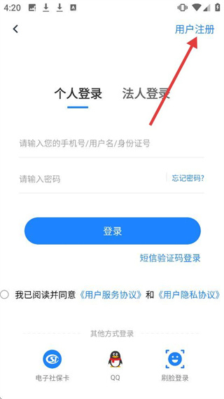 3在登录页面的右上角找到“用户注册”按钮并点击,即可跳转至个人注册界面。