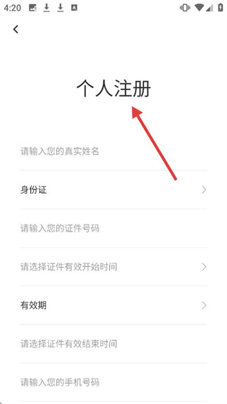 4在个人账户注册界面,需准确填写本人真实姓名、身份证号码、证件的有效起止时间以及用于接收验证信息的手机号码等必要资料,提交后即可完成注册流程。