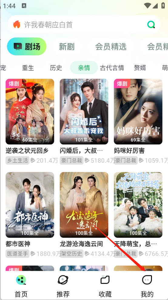 2、来到首页,可以看到顶部栏中有超级多的短剧资源类型。
