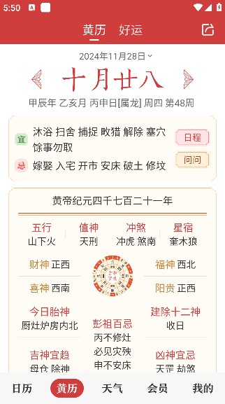 1、能够精准快速的查询黄历,了解进行的相关运势。