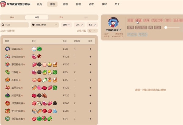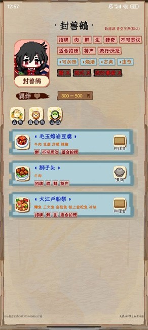 2、点击客人头像就能查看其喜好,每道料理还会展示制作食谱、售价、匹配度等相关信息
