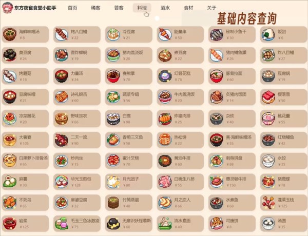 东方夜雀食堂助手(英文名为“Touhou Mystia's Izakaya Assistant”)是一款实用的游戏辅助工具,可助力玩家查询各角色的详细信息,涵盖名字、外貌、喜好、行为模式及推荐料理等内容。该助手操作简单,界面简洁,采用竖屏布局,方便单手操控,能为用户带来轻松愉悦的游戏体验。
