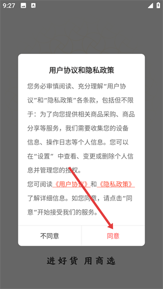 1、在用户协议与隐私政策的弹窗里,仔细阅读《用户协议》和《隐私政策》内容后,点击【同意】按钮,即可进入软件首页。