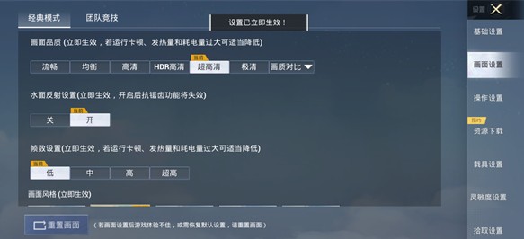 开启后,游戏的自定义设置将保持不变,不会丢失任何个人调整的画质或帧率配置。