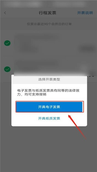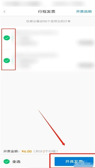 4接着,找到要开发票对应的行程信息,点击界面右下角的“开具发票”按钮。