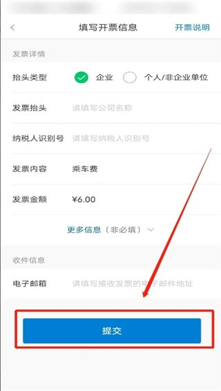 6、页面再次跳转后,我们按照页面上的提示填写好开票信息,然后点击下方的“提交”按钮就可以了,希望这些内容能对您有所帮助。