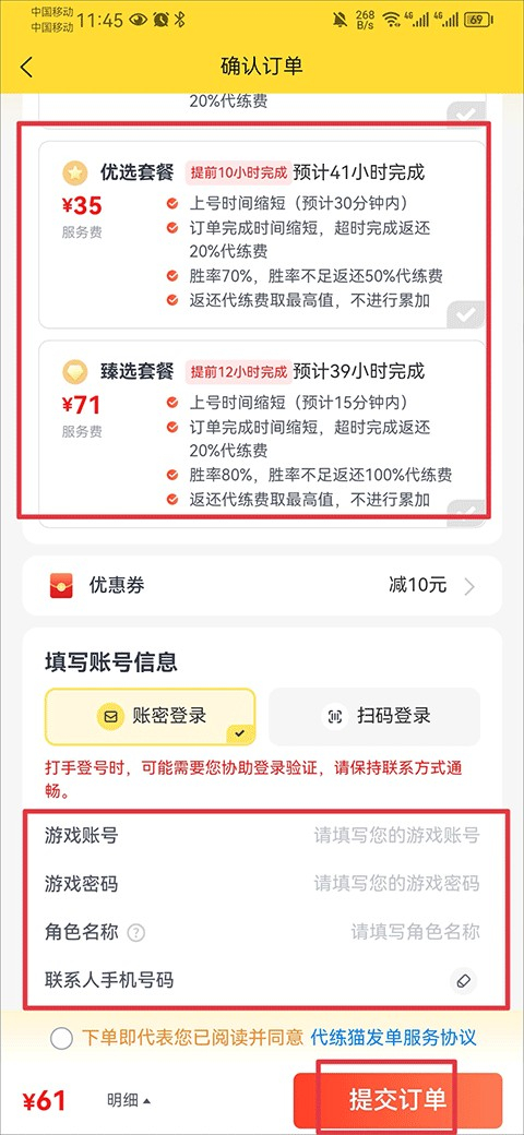 4最后,在订单确认页面选定所需套餐,补充完整账号相关信息,接着点击提交订单按钮并完成支付流程就可以了。