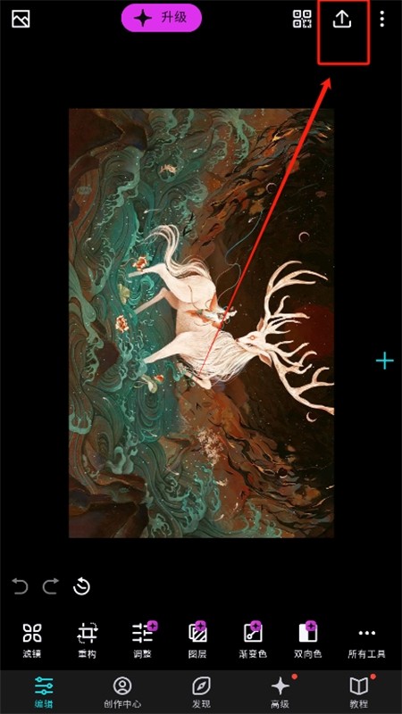 1、打开Polarr修图软件,进入你已编辑好的照片页面,点击右上角的【箭头】图标。