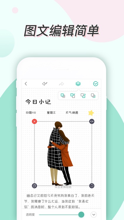 -支持图文混排,可自由拖动元素位置,并且能够插入多张图片和多段文字;