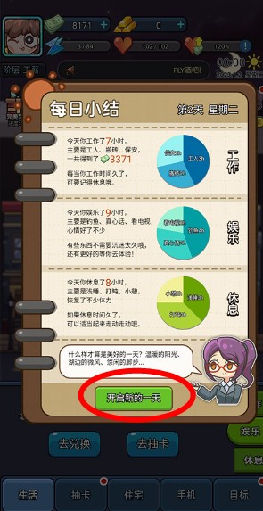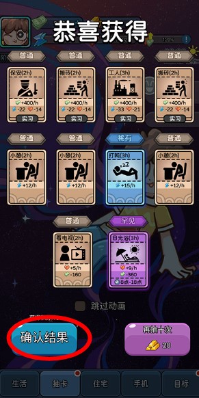 每张卡牌的效果会按顺序逐一触发,像恢复精力、获取薪水这类效果,玩家可以借助它们来完成预设的目标。
