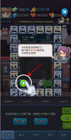 进入游戏后,依照游戏给出的指引来操作,开启你的打工生涯。