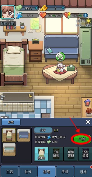 也可以用钞票来升级家具,这样既能提升生活品质,还能获得个人属性的加成。