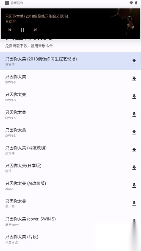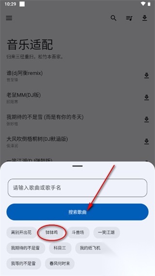 1、在音乐适配器里找到心仪的歌曲资源后,点击该歌曲右侧的图标。