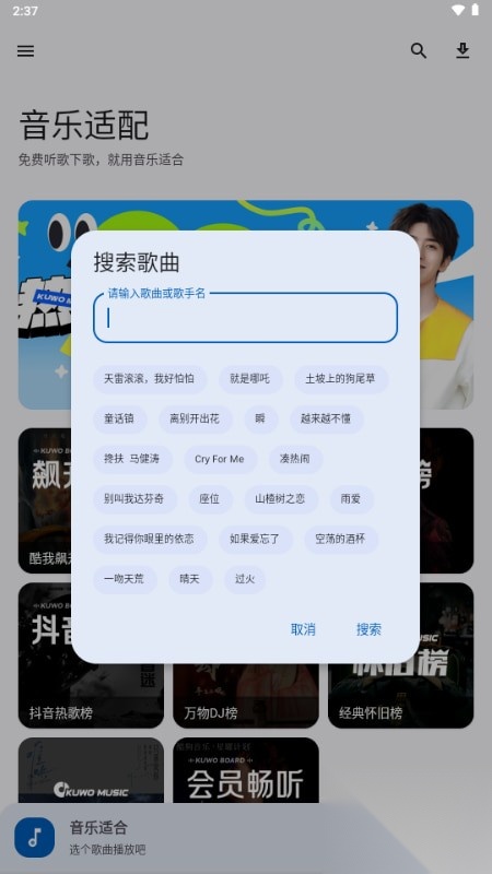 2、用户只需输入歌名或歌手名都能快速搜歌。