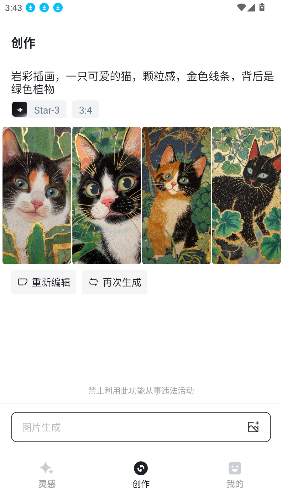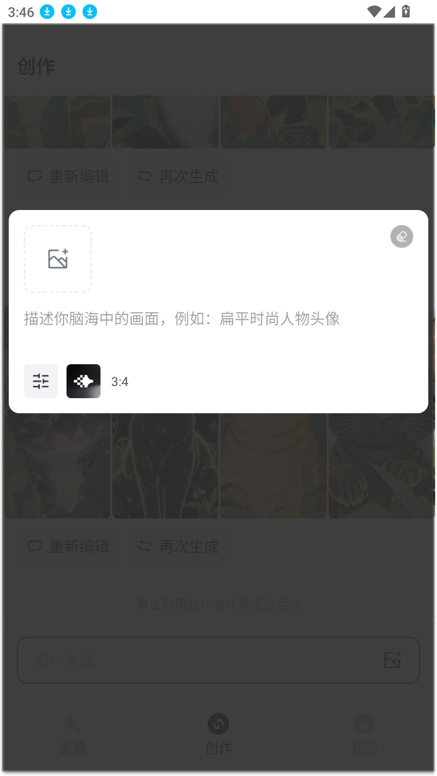 2. 进入后,点击下方的创作进行输入关键词进行生成即可。