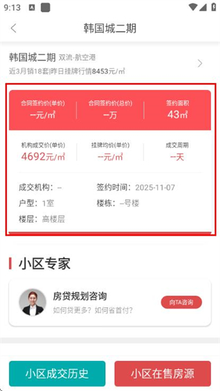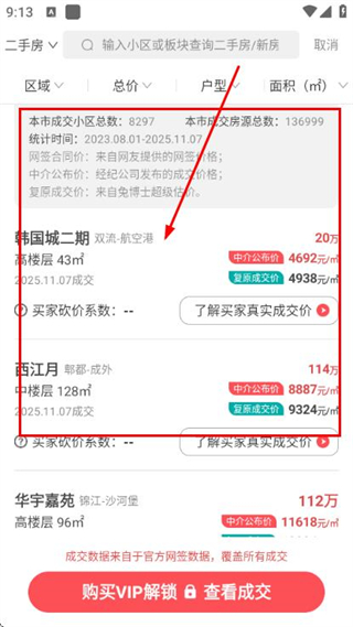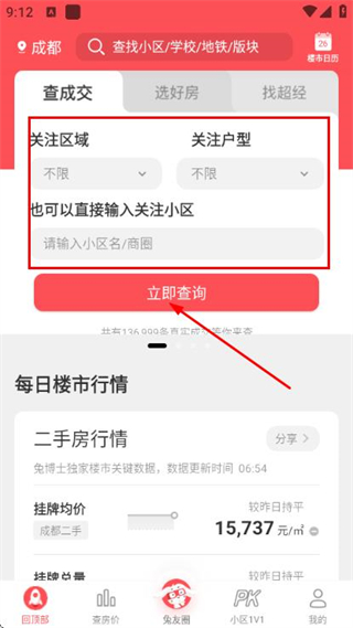 1在成交查询界面,可通过选定目标区域、具体户型,或是输入小区名称、商圈范围等方式设定筛选条件,确认后点击查询按钮即可获取相关成交数据。