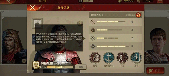 4、元老院:完成元老院发布的各项任务,训练麾下士兵,提升他们的战斗能力,借助战旗与宝物装备增强士兵战力。