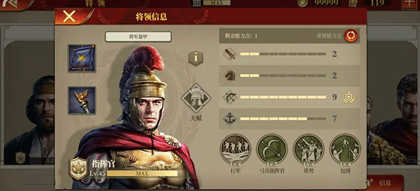 2、骑兵技能推荐:骑兵指挥官、游击战、突击、行军。