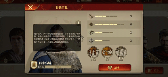3、氪金玩家在选择222阵型时,可考虑以下组合:汉尼拔搭配贝利撒留、斯巴达克斯搭配庞培、凯撒搭配阿提拉。