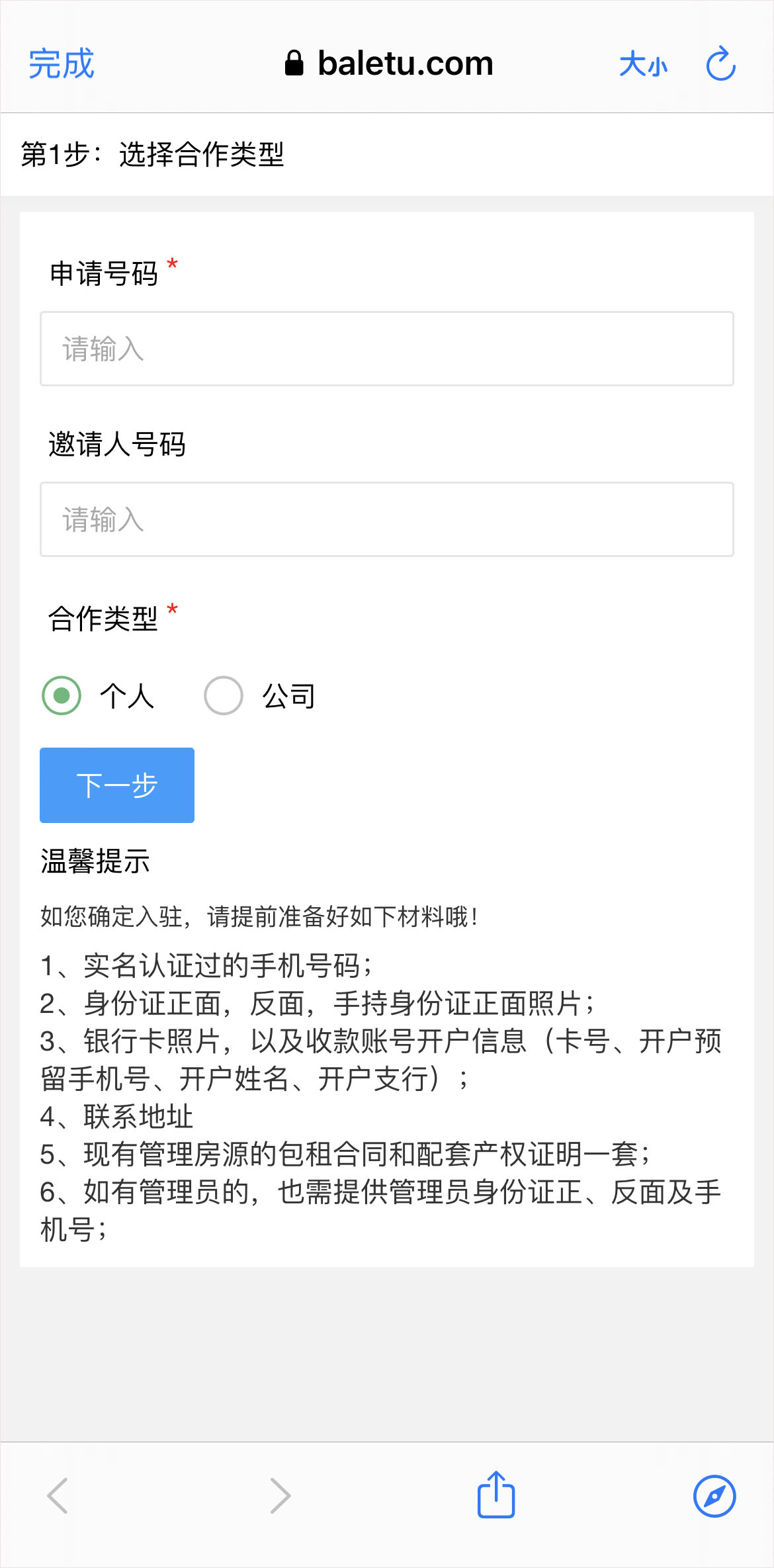4、先填写自己的手机号码,然后点击下一步