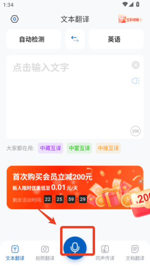 2当需要语音翻译时,长按麦克风图标后直接说话,系统会实时识别语音内容并同步生成对应的文字翻译结果,这种方式特别适用于当面交流的场景。