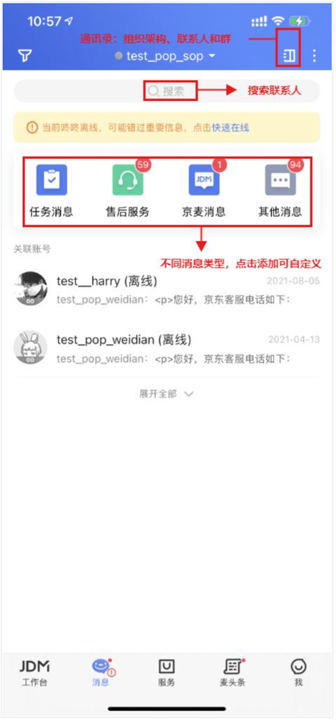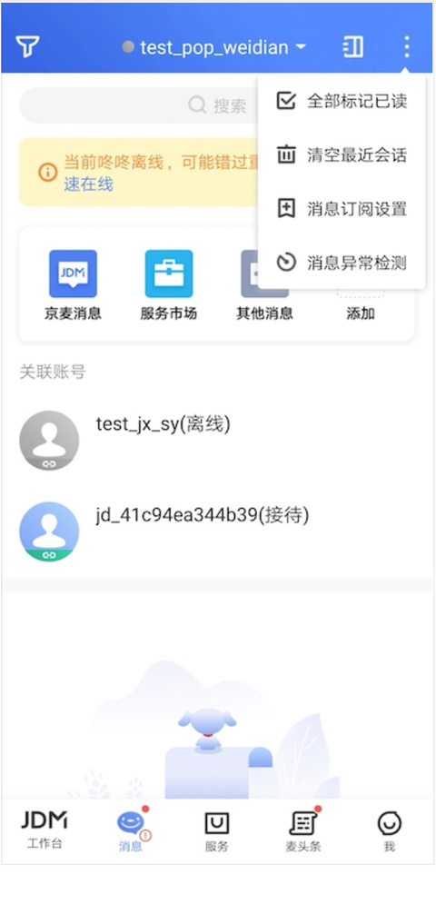 咚咚消息是商家和客户之间高效沟通的平台,您可以点击京麦里的“咚咚”选项进入该功能界面。