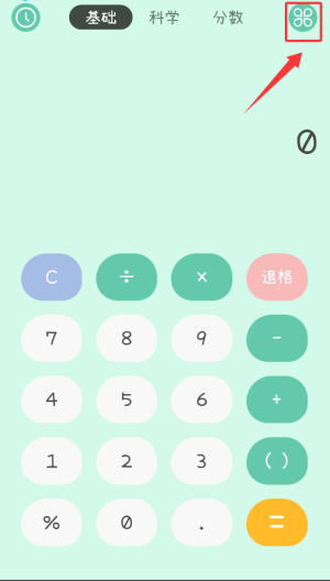 1、打开分数计算器后,点击界面右上角的扩展菜单按钮,浏览所有功能选项。