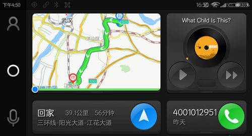 亿连驾驶助手是由导航、路况、音频、电话一页聚合。
